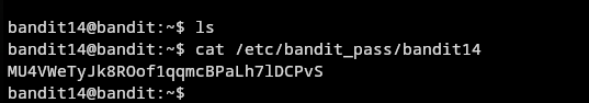 En este nivel se nos esta indicando que la contraseña esta guardada en la ruta /etc/bandit_pass/bandit14, pero esta contraseña solo puede leerla el usuario “bandit14”, entonces se nos dara una clave ssh para poder acceder como bandit14.
